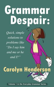 Because I’m a writer — and a daughter whose mother was insistent that I know the meaning and use of the nominative and accusative cases — these questions don’t bother me. But I know that they bother others, and for this reason I wrote Grammar Despair, an easy-to-read, user friendly guide with the answers to some of writing’s most common questions.