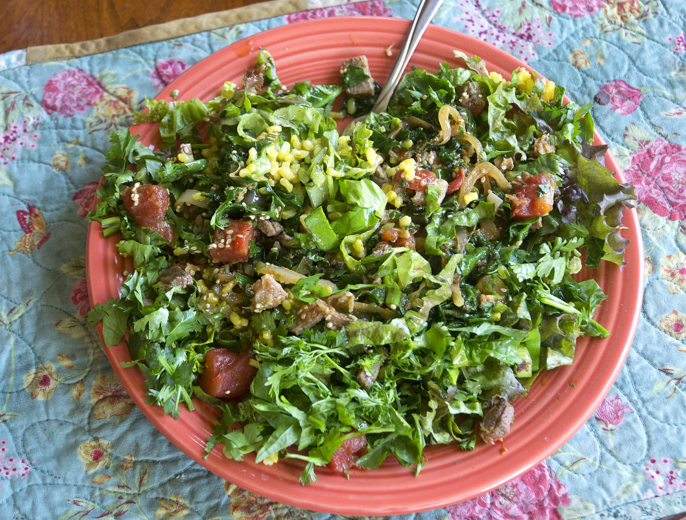 Thai Stir Fry Steak Salad — recipe makes four decent-sized dinner salads